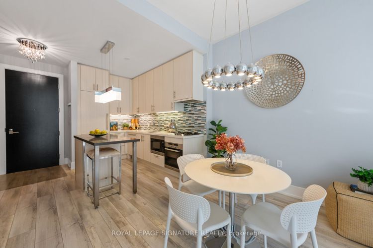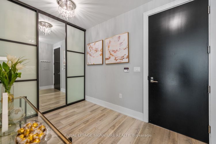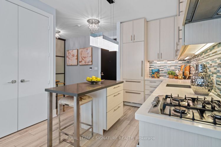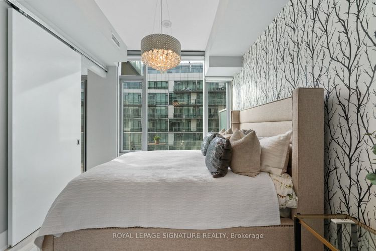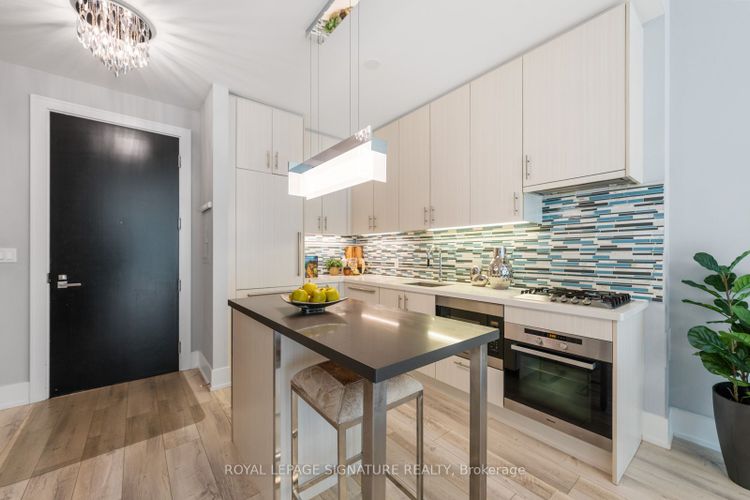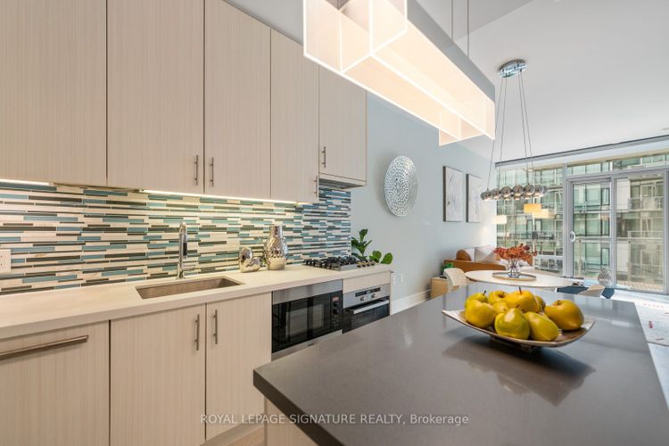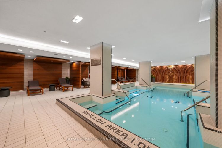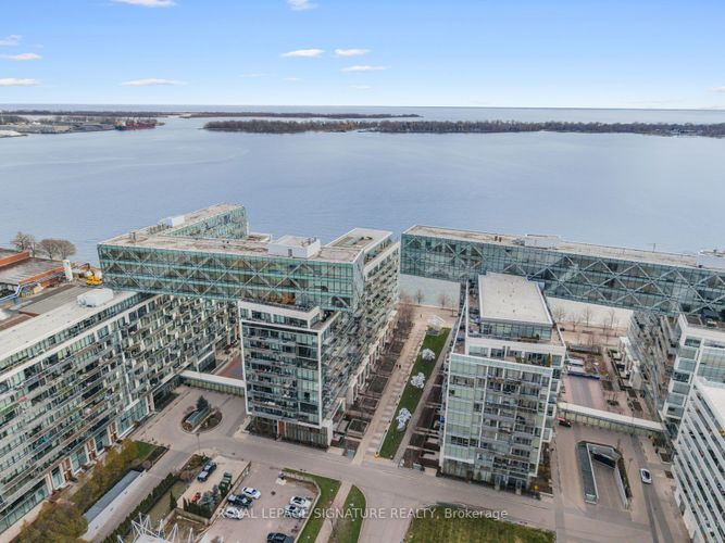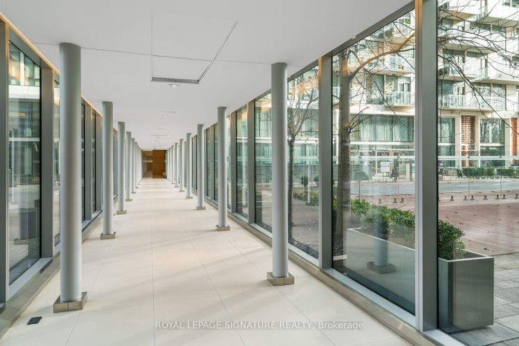 Perched on the 8th floor of a sought-after waterfront address, this one-bedroom plus den residence delivers an unparalleled urban living experience. Expansive windows frame stunning views of Lake Ontario and Toronto's iconic skyline, creating a dynamic backdrop for your everyday life. The spacious living area, enhanced by 10-foot ceilings and laminated floors, offers the flexibility to design your ideal setting, whether that's a cozy reading corner or an inviting entertainment space. The impressive chef-inspired kitchen features integrated Miele appliances, a Sub-Zero refrigerator, Quartz countertops, a glass-tile backsplash, and upgraded cabinetry, making meal prep both stylish and efficient. The tranquil bedroom offers a view of Lake Ontario, a serene retreat with ample, customized closet space, while the spa-like bathroom features a luxurious soaker tub/versatile shower, and a wall/built-in cabinet. Thoughtful upgrades include customized closet systems, designer LED lighting, a smart home thermostat, an in-suite alarm system, and motorized blackout blinds. Beyond your private sanctuary, the building offers exceptional wellness-focused amenities, including a fully equipped gym, indoor and outdoor pools, a sauna, a recreational room, guest suites, a party room, a game room, and dedicated treatment rooms. Neighborhood Highlights Grocery: Loblaws (600m), Farm Boy (400m), Kitchen Table (450m), St. Lawrence Market (1.1km)Transit: Union Station (1.2km), Union Station Bus Terminal (850m), Jack Layton Ferry Terminal (600m), Billy Bishop Airport(3km)Entertainment: Scotiabank Arena (900m), Meridian Hall (1km), Harbourfront Centre (1km), Rogers Centre (1.3km)Attractions: Toronto Music Garden (1.8km), Sugar Beach (600m)Embrace the vibrant waterfront lifestyle and elevate your everyday living in this sophisticated urban sanctuary. (id:26452)