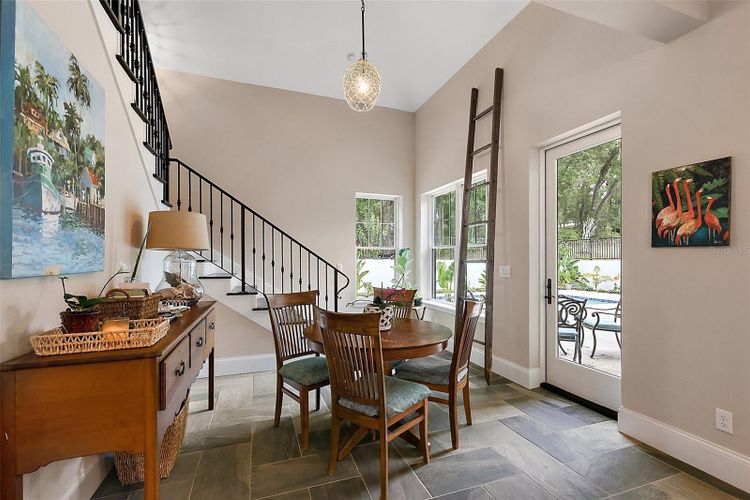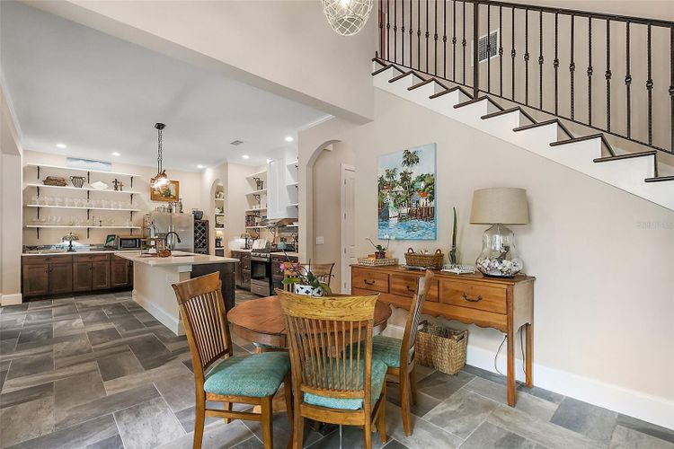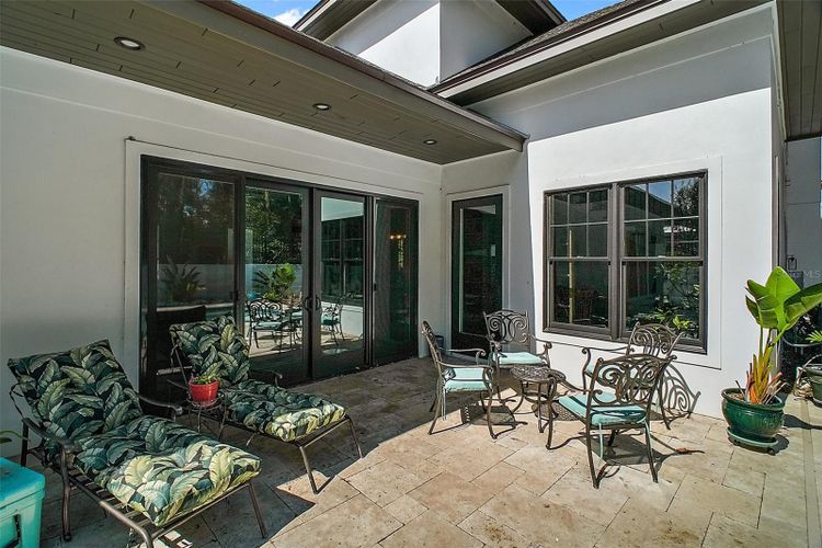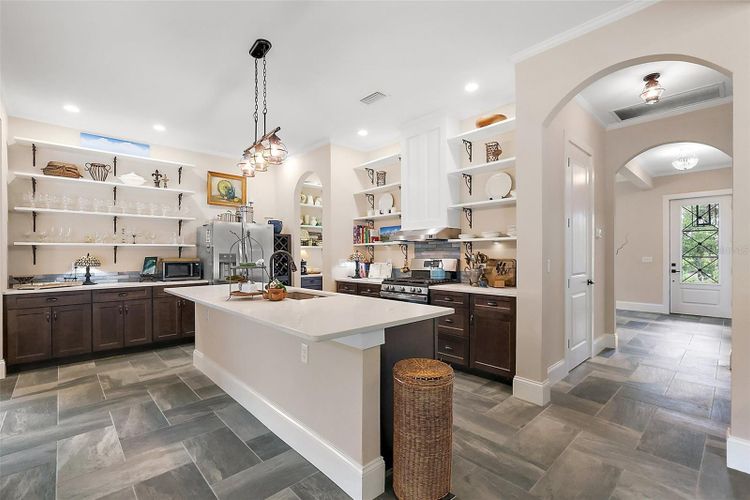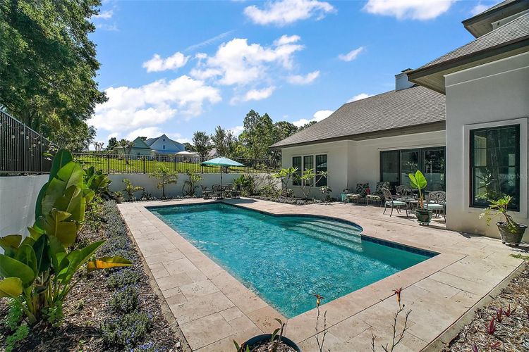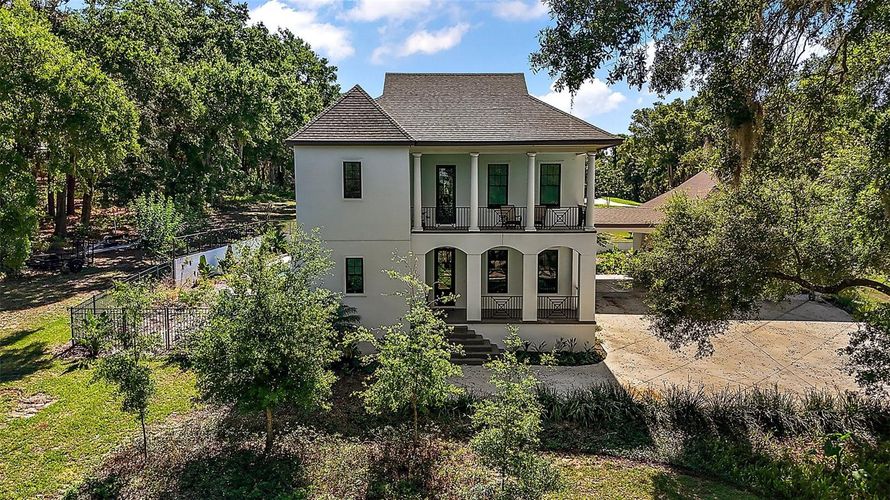 WALK TO TOWN from this British West Indies inspired CUSTOM POOL HOME built in 2023 on 1.21 ACRES! If you are seeking a quiet place surrounded by lovely homes, grand oaks and NO deed restrictions or HOA, this thoughtfully designed home is worth your time to take a look at! THE LOCATION is on the south side of Historic Mount Dora and affords quick access to the Wekiva Parkway (429) via the 453 connector and other major highways. It’s an easy trip of approximately 45 minutes to either Orlando (OIA) or Orlando-Sanford (SFB) International Airports, 45 minutes to Disney, an hour to the east coast beaches, and 30 minutes to Orlando. SPECIAL FEATURES include a well-designed kitchen that is the heart of the home, highlighted by the 3'-6" x 10' quartz island with a double sink, upper open shelving, and plenty of lighting to display your favorite dishware. The kitchen is smartly fitted with a 5-burner gas range, dishwasher, refrigerator and a microwave. The convenient BUTLERS PANTRY provides additional storage and makes entertaining effortless between the kitchen and the dining area. In the living room the Isokern® masonry GAS FIREPLACE has a classic herringbone brick pattern inside surrounded by a cast stone mantle and is wonderful on those cooler evenings. There are two bedrooms on the main floor, a guest suite with a private entrance, and a full bath that doubles as a pool bath. The spacious primary bedroom offers a walk-in closet and an ensuite bath. The bath has access to the backyard, and offers a double vanity with glass sinks, and complementary designer tile around the tub-shower area. Upstairs you will find versatile wood floors, two more bedrooms, a full spacious bath, a WET BAR, and a BONUS ROOM currently used as a lounge. The lounge opens to the balcony that overlooks the front yard grounds. The home offers plenty of STORAGE, from the laundry room with its bonus storage under the stairs, and THREE DECKED ATTIC AREAS with 3/4" flooring. The 8' x 15' attic spaces are located over the garage, over the master bedroom closet measure 8' x 25', and over the second floor a storage space measuring 10' x 18'. ENERGY FEATURES in this home include Anderson® insulated windows, vented attic with spray foam insulation, 2 gas water heaters for instant hot water, and 2 HVAC units. The whole-home Generac® GENERATOR is located next to the garage. Enjoy an oversized 24' x 30' two-car garage with automatic front and rear 8' high doors. This versatile garage can house two cars, store a boat, or use the space for your hobbies while enjoying the garden view from the rear garage door. A classic 18' x 19'-4" PORTE-COCHERE between the home and garage allows for additional parking. The porte-cochere and garage open to the kitchen garden which offers flowers, fruit trees, herbs and vegetables with an additional fruit tree orchard in the backyard. If you are seeking a relaxed lifestyle in a one of a kind newer construction residence and a great Mount Dora location, this may be the home for you!