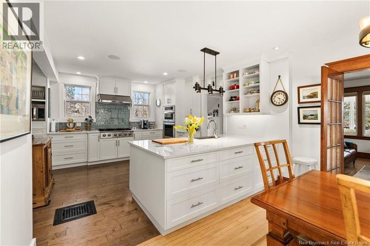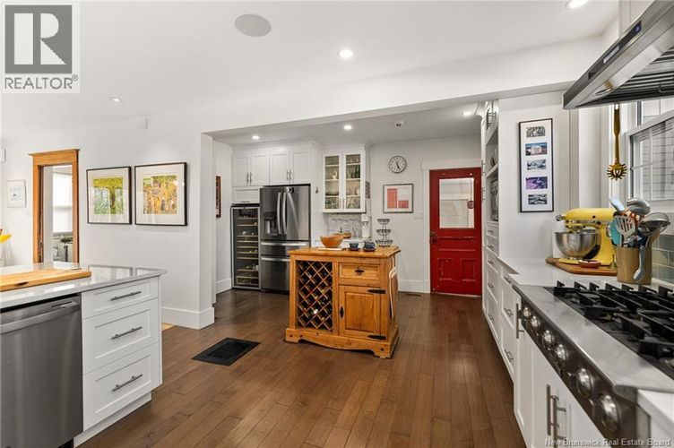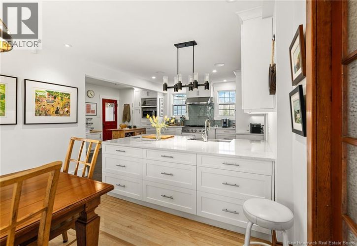 Welcome to this beautifully restored 5-bedroom year-round beach house that perfectly blends the timeless charm of a historic home with the convenience of todays modern amenities. Nestled just steps from the water, this property offers an ideal coastal lifestyle. At the heart of the home is a stunning, chef-inspired kitchen that will delight both foodies and home cooks. It flows seamlessly into the dining room, which overlooks a lush, landscaped backyard featuring an in-ground pool and a covered seating areaperfect for relaxing and entertaining on long summer evenings. Recently refinished hardwood floors add warmth and character throughout. The inviting living room features a cozy propane fireplace, while the classic front porchwith water viewsis ideal for soaking in the beauty of those laid-back summer days. This home includes two full bathrooms, a powder room, and a thoughtful layout, with the private primary suite tucked into its own wing for added comfort and tranquility. Originally transported from Moncton and lovingly reassembled on this picturesque lot, this one-of-a-kind property blends vintage charm with stylish modern updates. Additional highlights include a double-car garage and exceptional craftsmanship throughout. Dont miss your opportunity to own a truly unique coastal retreat in an unbeatable location! (id:26452)