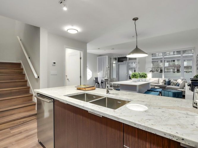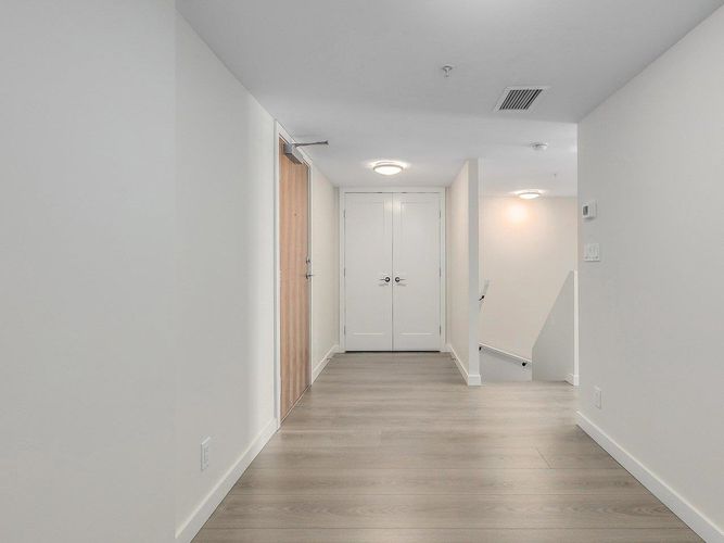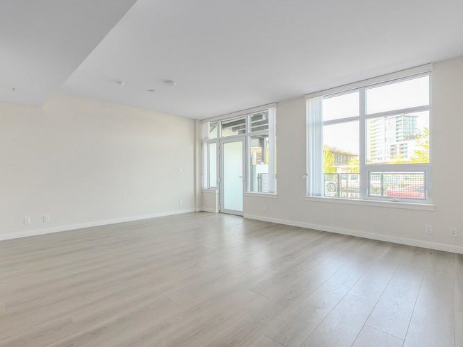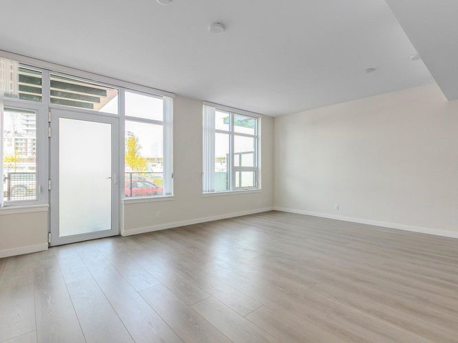 Rare park-view concrete 2 Level Townhome! Brand new & move-in ready! This is really something special with house-sized living and dining areas, large flex room (could be queen size guest bedroom or office) and full bathroom on main floor. 2 large bedrooms + den on top floor. Ample storage throughout home with laundry room, many closets and crawl space under stairs. Fantastic neighbourhood, in front of the park, and 1 min walk from the Capstan Canada Line Station. Weekend showing Dec 27 & 28 12-4pm.
