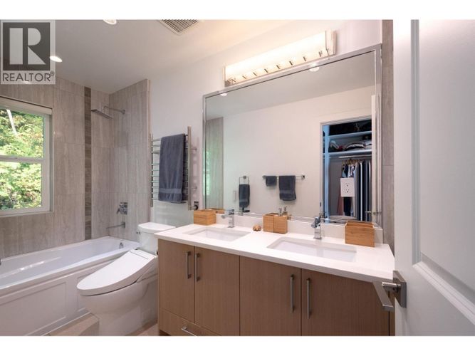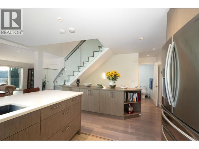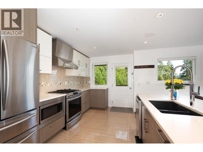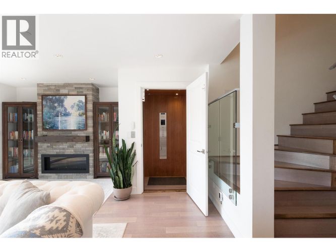 Amazing views; better than new house! Welcome to this spectacular top quality rebuilt home. Hidden up off the road, this home has ALL the extras. Drive up to your gated property and enjoy ocean/mountain views to the front; exclusive Quarry Rock trail access in back. Multi-level home with luxurious finishes and windows everywhere. High and bright open plan, with 3 bedrooms + den (4th bedroom?) up; suite and beautiful rec room down. Rare extras include A/C, auto blinds, smart lights/sound. Decks everywhere to enjoy the amazing sunny south facing outlook. Tons of parking; EV charger; workshop; lots of storage. Don't like stairs? Get out of your car and hop into the elevator. So many extras; too many to list. Walk to shops, restaurants, schools. (id:26452)