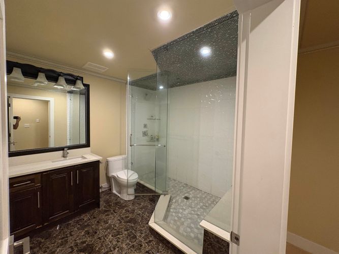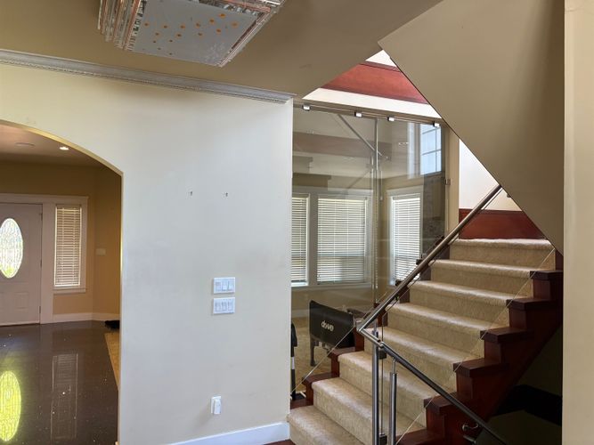 WOW!! Opportunity here. Location is prime in an area of executive homes on a quiet street. Layout is open with all rooms large and open. Main floor has a great spice/wok kitchen, main kitchen with door to back covered deck and level yard, formal area has lots of coffered ceiling details, marble foyer double door entry and 2storey ceilings, main floor bedroom with en-suite bath is perfect for those not wanting stairs. Upper floor has a massive primary bedroom with access to a large covered deck, full spa like en-suite, bedrooms have en-suite baths and walk in closets, even a Juliette deck off one bedroom. Basement with separate entry has an easily done suite with the remaining space for the upstairs use plus an enormous theatre room. Parking is 3 car garage + a single garage for your toys. (id:26452)