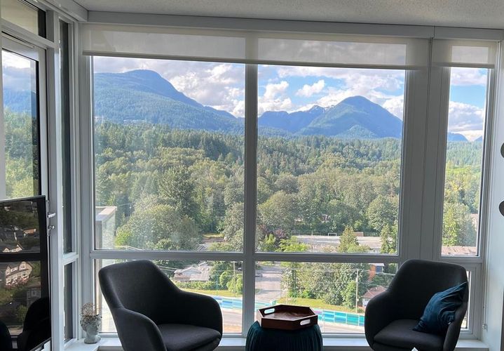 Experience North Shore living at Beacon in Seylynn Village! This 1-bedroom home features a modern kitchen with island & stainless steel appliances, bright living area with floor-to-ceiling windows and mountain views, a peaceful bedroom with walk-in closet, spa-style bathroom, in-suite laundry, and covered balcony with gas BBQ hookup. Includes parking, storage & bike locker, A/C, and access to luxurious amenities: indoor pool, hot tub, sauna, steam room, fitness centre, party room & guest suite. Steps to shops, trails, and nature, minutes to downtown Vancouver! (id:26452)