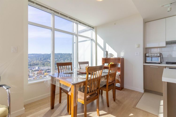 Welcome to 1182 Westwood building by Polygon Homes! This bright corner unit 1 bed +1 bath, 638 sqft suite features an open layout with east and southeast views, catching the morning sun and even Mount Baker on clear days. Enjoy a stylish kitchen and spa-inspired bath both with heated floors, plus a spacious bedroom and balcony for relaxing or entertaining. Built with Polygon's renowned quality, this home offers comfort and convenience - steps to Lincoln Skytrain, Coquitlam Centre, T & T, restaurants, and LaFarge Lake. Includes secure parking, storage and great amenities-ideal for first time buyers or investors!