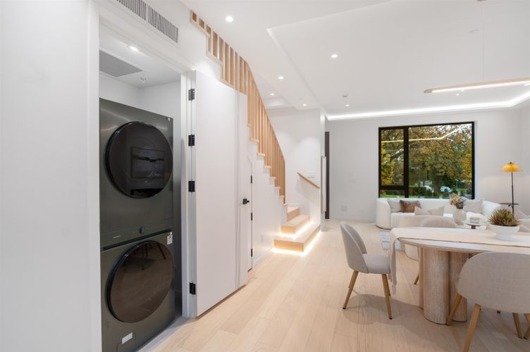 Rare opportunity to own a refined duplex style home in Vancouver’s prestigious Westside. Quietly situated along Adera St and W66th Ave, Adera Arch blends contemporary design with West Coast elegance. Bright open interiors, expansive windows, and curated details capture both light and tranquility. Developed and architecturally designed by Livarch Developments Ltd., this “one-lot-four-unit” project showcases functional layouts, private outdoor spaces with storage shed, and premium craftsmanship. School catchment: Dr. R.E. McKechnie Elementary and Magee Secondary. Short walking distance to shopping, grocery etc. This unit is the LARGEST one with best view.