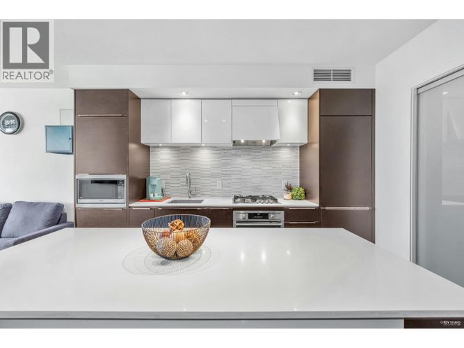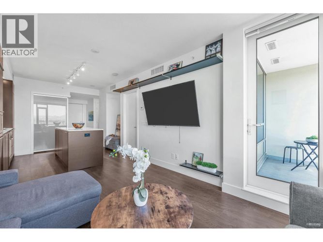 Welcome to River Park Place I by Intracorp! This well-maintained 1 Bed + Den unit with stunning Northeast-facing views of the Fraser River, Mountains & City! Features an open-concept kitchen with island, fully integrated appliances, stone countertops, A/C, wide plank laminate floors & large covered balcony. Spacious layout with semi-ensuite bath & generous living space. Amenities include concierge, gym, basketball court, theatre, study & rooftop BBQ area. Steps to Olympic Oval, T&T, shops, restaurants & Lansdowne SkyTrain. Great home or investment! 1 locker and no parking. (id:26452)