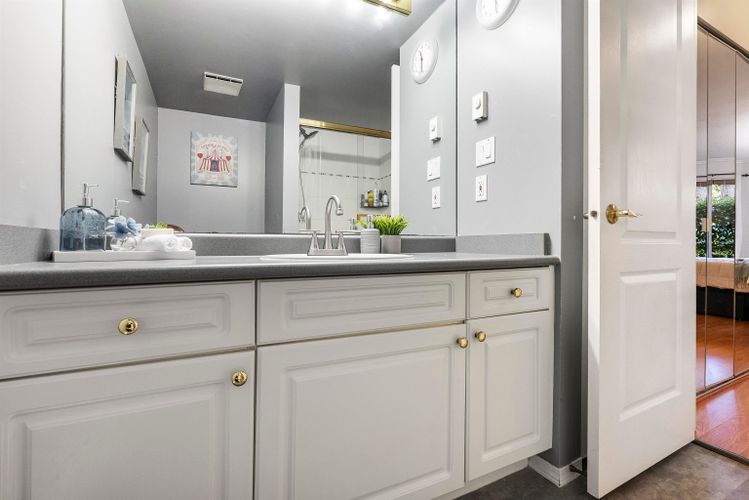 Bright and spacious ground-floor corner condo offering over 1,000 sq. ft. of comfortable living in the heart of Bolivar Heights. This 2-bedroom, 2-bath home features an open-concept layout, updated kitchen with stainless steel appliances, and new flooring in the kitchen and bathrooms. Enjoy your huge private outdoor area, perfect for relaxing or entertaining. Cozy gas fireplace (included in strata fee) plus access to a hot tub, sauna, and fitness room. Steps to Guildford Mall, Recreation Centre, Library, and easy access to Hwy 1. First time homebuyers, this is perfect for you! (id:26452)