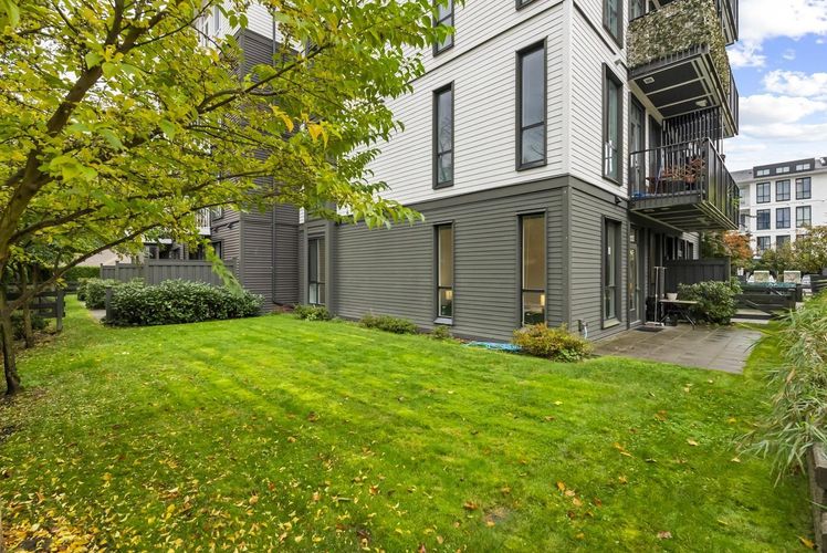 A rare blend of condo living with your very own private yard. Welcoming you into this bright and inviting ground-floor home in the popular Guildhouse community by Mosaic. This 2-bedroom, 1.5-bath suite offers 807 sq.ft. of thoughtfully designed living space with 10 ft ceilings and a spacious private yard-perfect for morning coffee or quiet evenings outdoors. Inside, you'll find modern finishes throughout, from stylish flooring and tile work to sleek kitchen cabinetry. The open layout feels fresh and comfortable, ideal for everyday living or entertaining. Located just steps from Guildford Town Centre, parks, and transit, this home combines convenience, comfort, and contemporary style in one of Surrey's most walkable neighbourhoods. (id:26452)