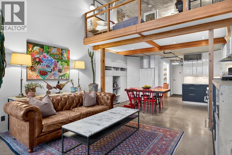 The wait is over! This beautifully updated 2-level, 909 sq. ft. loft at The Edge is the one you´ve been holding out for. Thoughtfully renovated over the years, it features a designer kitchen, floor-to-ceiling windows framing water and North Shore mountain views, and a cozy living area perfect for relaxing nights by the fire. You´ll love the custom built-ins, separate office/flex space, and the kind of amenities you won´t find anywhere else in Vancouver-pottery studio, woodworking shop, fitness room, band practice spaces and more. Situated steps from local culinary favourites like Ask for Luigi, The Belgard Kitchen and The Alibi Room, and just a quick stroll to Gastown or downtown, this home is the definition of easy urban living. ***Open Sunday Dec 14 1-3pm*** (id:26452)