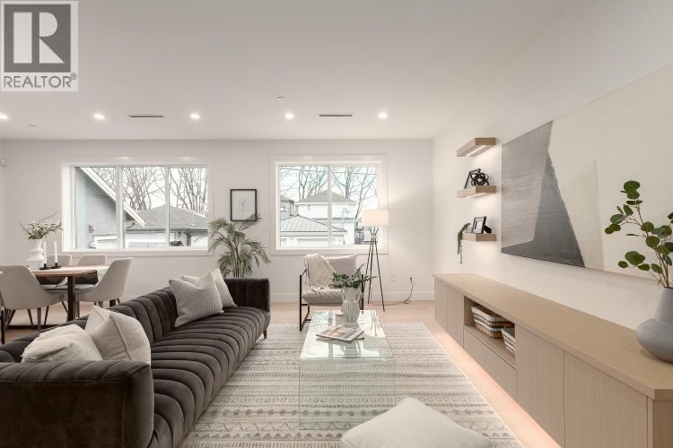 Rare TWO LEVEL 3-bedroom home at The Westline Collection delivers bright south facing living on a quiet tree lined street w/ NO STRATA FEES. The open main floor offers massive living and dining spaces, wide plank light oak engineered hardwood, and a Scandinavian inspired island kitchen with Fisher Paykel appliances, quartz counters and backsplash, under cabinet LED lighting, and custom millwork. All bedrooms sit on the 2nd level, ideal for families, with a primary suite that includes a generous walk in closet and ensuite finished with Italian and Spanish tile, Kohler & Riobel fixtures and quartz counters. Enjoy full size laundry, built in closet organizers, EV charger parking & smart home features in a truly convenient location close to amenities, cafes (Breka!), restaurants, and transit.