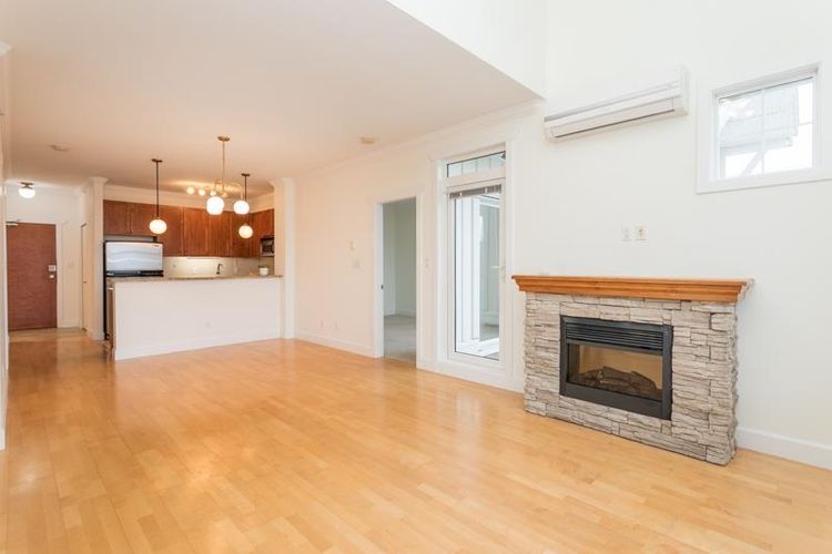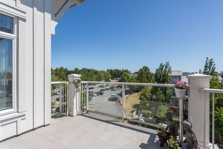 THE VILLAGE-bright & spacious TOP FLOOR unit offering 2 bdrms, 2 bathrooms plus a DEN conveniently located in the heart of Steveston Village! Tiled entryway leads into the kitchen w/granite counters & stainless appliances. Huge primary bdrm accommodates king bed w/nightstands & dresser; opens onto the NE balcony. Walk-though closet to the ensuite w/shower & soaker tub. Main living area offers tons of light & vaulted ceilings centered around cozy electric fireplace. Spacious 2nd bdrm ensuited to main bathroom. Sunlit den opens onto the SE balcony for more outdoor enjoyment. BONUS: heat exchange/AC approved by strata & 3 PARKING SPOTS! Beautifully maintained building with amazing amenities & on-site caretaker, all steps to the Boardwalk, shops, restaurants & services.