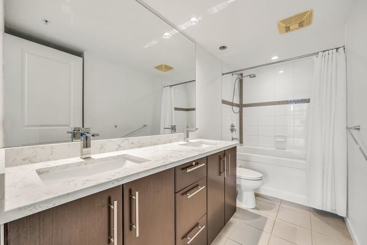Welcome to this well-appointed 19th-floor apartment at Watercolours in the heart of Brentwood. This 2-bedroom, 2-bathroom home offers approximately 860 sq. ft. of functional living space with an open-concept layout and bedrooms positioned on opposite sides of the unit for added privacy. The suite features a practical kitchen with ample cabinetry, a bright living and dining area, and expansive city views with good natural light. The building is conveniently located near Brentwood Town Centre, SkyTrain, shopping, grocery stores, restaurants, and everyday amenities, providing excellent access to transit and major routes. The unit includes one parking stall and one storage locker. Pets may be considered, non-smoking, minimum one-year lease, and tenant insurance required.