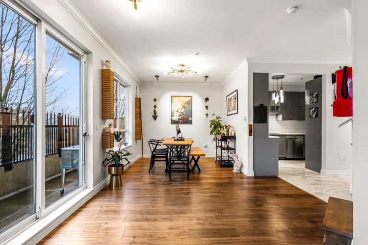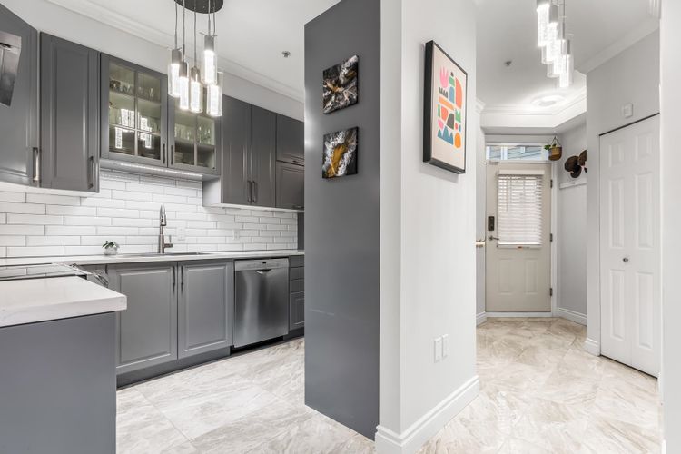 3 bed, 3 bath townhouse on 2 levels in Glenbrooke North! Units in Chesham Walk are rarely available. Tons of updates throughout including entire kitchen & appliances. Engineered hardwood floors. Gas fireplace & stunning wood mantle in living room - gas included in strata fee. Powder room & 9 ft ceilings on main floor. All 3 bedrooms & washer/dryer on upper level. Primary bedroom with ensuite bathroom. Large SW facing balcony w/ gas hookup for BBQ. 2 parking stalls side-by-side with EV charger. Storage locker, 2 pets allowed. Within walking distance to a variety of amenities - parks, schools, transit & more. OPEN HOUSE Sat, Dec 20 @ 2-4pm & Sun, Dec 21 @ 3-4:30pm.