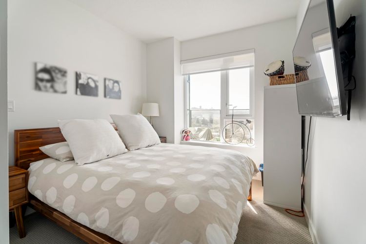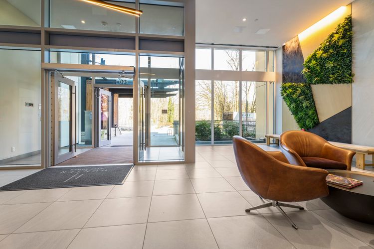 PANORAMIC VIEWS | LUXURY LIVING - Welcome to Hunter at Lynn Creek! This stunning 1 BDRM + DEN home offers breathtaking south-facing views, a spacious covered balcony, and air conditioning for year-round comfort. The sleek open-concept kitchen boasts quartz countertops, modern cabinetry, stainless steel appliances, and a gas stove-perfect for home chefs. The den is ideal for a home office, while wide plank laminate flooring adds a touch of elegance. Enjoy resort-style amenities: a gym, sauna/steam room, party lounge, BBQ area, kids' play zone, and more! Steps to Seylynn Park, Spirit Trail, rec center, shops, pharmacy, nail salon, and transit. 2 pets welcome!