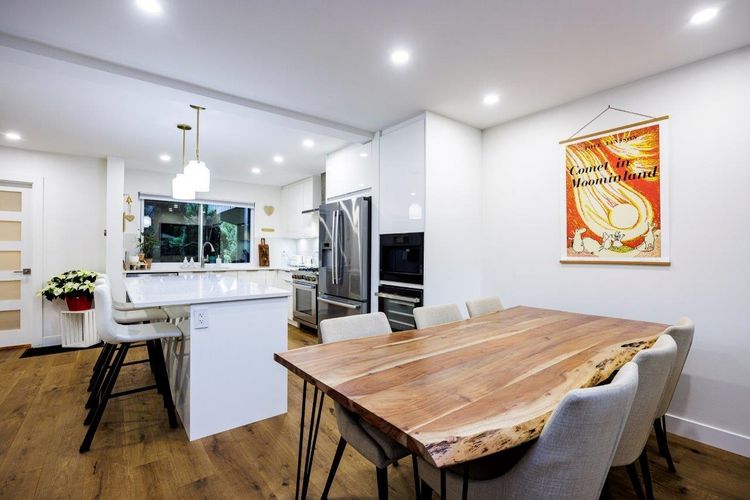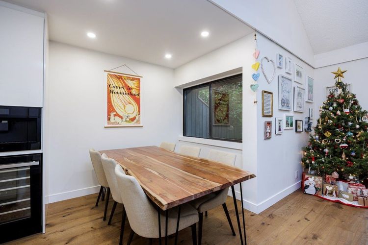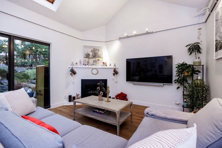 Welcome to the Maples- A well loved and maintained friendly complex near Deep Cove/Dollarton! This Turnkey, 3 level townhome has been recently renovated and oozes quality and style throughout. The spacious kitchen is simply fabulous with quartz counters, high quality gas range, very high end built in Jennair Cappuccino maker/wine fridge and overlooks the spacious dining and living room with soaring vaulted ceilings, skylights and sliders leading to the large private patio and rock garden. Reward yourself with spa like ambiance out back in your jacuzzi under a starlit sky! 3 bedrooms up with gorgeous ensuite. Downstairs features a family room, wine bar & workshop with additional storage. The complex has an outdoor saline pool and is surrounded by Seymour golf course. Close to all schools!
