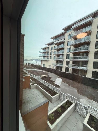 Luxury living in this brand new, never lived in waterfront concrete townhome at North Vancouver’s newest waterfront community, North Harbour. This ground floor home with private entry offers over 1,300 sf of thoughtfully designed living space plus a 200+ sf patio with water views. The main level features an open-concept kitchen, dining, and living area with a powder room, ideal for everyday living and entertaining. Upstairs are two well-sized bedrooms, each with its own bathroom. Ample storage throughout. Includes 1 oversized parking stall and 1 external storage locker. Building amenities include a well-equipped gym, rooftop terrace with BBQ and garden, rooftop lounge and study area, concierge service 16 hours daily, and overnight security. Available starting Jan 16, 2026.
