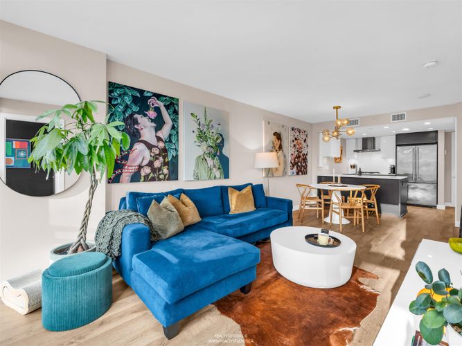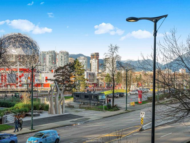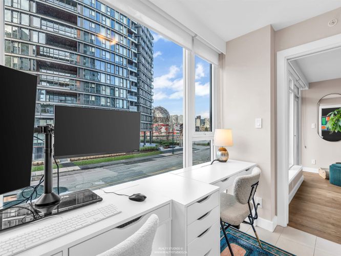 Welcome to Central by ONNI! This bright and well-designed 1-bedroom, 1-bath home boasts fabulous city and mountain views and features a gourmet kitchen with stainless steel appliances, gas range, and quartz countertops. Thoughtfully laid out with air conditioning, a den, and a versatile solarium/flex space, this residence offers both comfort and functionality. Ideally located just steps from the Seawall, SkyTrain, Olympic Village, parks, and an excellent selection of restaurants and shops. Enjoy outstanding amenities including a fully equipped gym, rooftop garden and playground, theatre room, sauna, and concierge service. Includes one parking stall and one storage locker. An excellent opportunity for first-time buyers or investors alike!