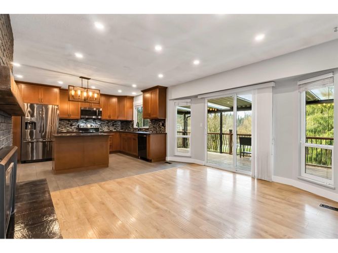 Rare 1.29-Acre Estate (56,000+ SQFT) - NOT IN ALR - Nestled in a quiet cul-de-sac in the heart of Salmon River, just minutes to Highway 1 at the 232 Street interchange. This property offers the space, privacy and flexibility that are increasingly hard to find. Fully renovated, the sleek, upgraded kitchen boasts stainless steel appliances, while spacious living areas and high-end finishes make it move-in ready. Very spacious lower level and an excellent outdoor space with ample parking, ideal for contractors, trades, or buyers needing room for vehicles, trailers, or equipment.