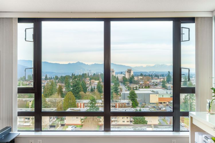 BREATHTAKING northeast mountain and city views define this bright and modern 1 bedroom home at Esprit 2 by BOSA, located in the heart of Highgate Village. The living room features three walls of windows, offering exceptional natural light and panoramic views. Thoughtfully designed with an open kitchen including granite countertops, stainless steel appliances, and double sinks, plus abundant storage throughout. A built-in workspace adds smart functionality. Enjoy hardwood flooring in the living room and bedroom, a new laundry set, a spacious balcony, 1 parking, and 1 storage. Outstanding amenities include a large gym, sauna/steam room, library, party room, and gated pet-friendly garden. Steps to groceries, library, community centre, SkyTrain, Metrotown, and Highway 1.