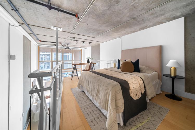 Experience iconic LIVE/WORK living at WSIX, an Arthur Erickson–designed concrete and copper landmark in Vancouver’s vibrant Westside. Steps from Granville Island, Kitsilano, South Granville; this residence offers a lifestyle second to none, complete with Michelin-star dining and dog-friendly community. Soaring 16’ ceilings and south-facing windows fill the space with light, opening to a 100 sqft balcony. Industrial-chic design in the kitchen features AEG and Fisher & Paykel appliances. A floating staircase leads to a loft bedroom retreat complete with walk-in closet and laundry. Marble floors and a deep soaker tub define the spa-like bath. Flexible main-level space suits studio or office—an architectural statement of modern West Coast living. Open House - Sat & Sun, March 14/15, 2-4.