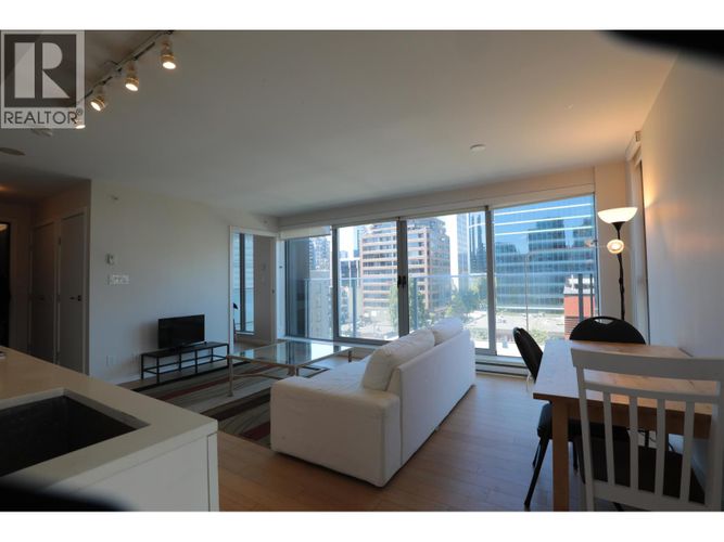 This bright and spacious corner 1-bedroom + den residence offers a highly functional layout, with the den large enough to be used as a second bedroom or home office. Floor-to-ceiling windows fill the space with natural light and showcase vibrant city views. The sleek open kitchen features quartz countertops, modern cabinetry, panel-integrated appliances, and an undermount sink. The bedroom includes a built-in wardrobe plus walk-in closet. full-sized in-suite laundry add to the convenience. Enjoy excellent building amenities including a fully equipped gym, yoga studio, residents’ lounge, and bike storage. Just steps to Yaletown, Granville Street, Robson shopping, SkyTrain, BC Place, Rogers Arena, and the Seawall –this location offers the ultimate in Downtown Vancouver living