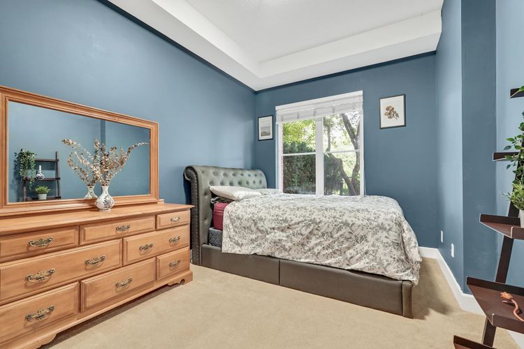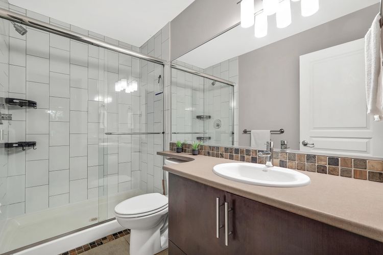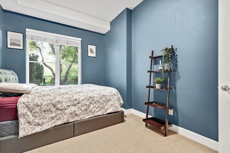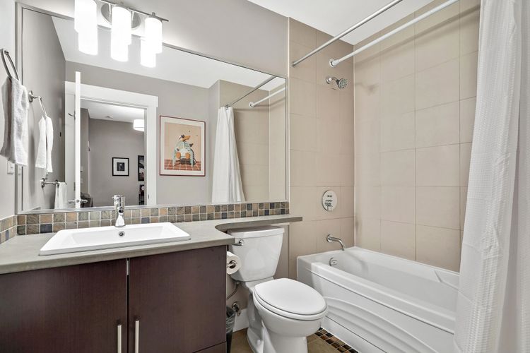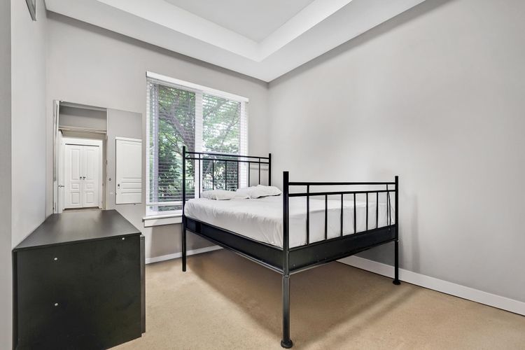 Soaring 10’ ceilings and sleek modern finishes set the tone in this beautifully designed 2 Bed + 2 Bath + Large Den home. The bright north-facing ground-level layout opens to a patio with tranquil green space views, your own peaceful escape and the perfect spot for morning coffee. The large den offers incredible flexibility as a home office, nursery, or bonus room. Enjoy the convenience of in-suite laundry, 2 secure parking stalls, and a pet- and rental-friendly building. All just steps to shops, cafés, and transit—comfort, style, and location all in one. This one has it all, book your showing today. 2 pets allowed*