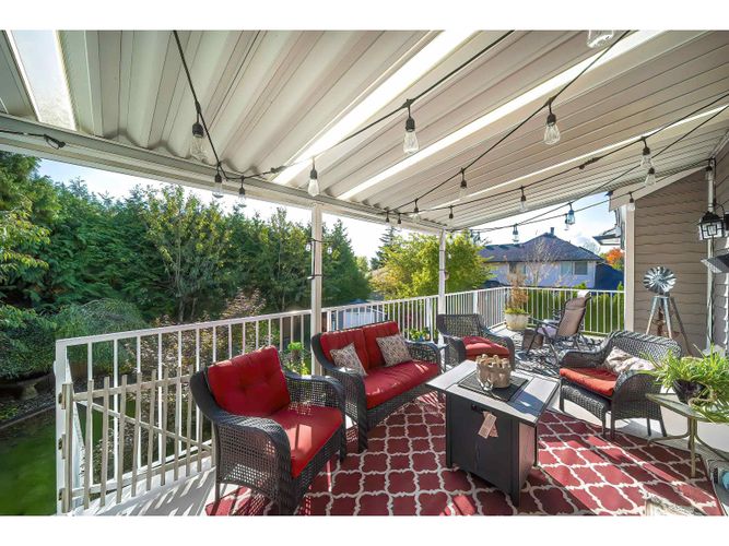 Executive-style home designed for multi-generational living and income potential. Over 5500 sq ft of bright, functional space on a 7857 sq ft manicured lot with two covered decks for year-round enjoyment. Spacious layout with large rooms throughout, air-conditioning and a massive rec room. The above-ground, legal, 2-bedroom suite has its own entrance, ideal for extended family a mortgage helper. The triple-car garage features a huge mezzanine for extra storage, and an extra-wide driveway on a wide street offering excellent parking. Some updates include a new roof, new gutters, newer siding and hot water tank. Updated bathrooms. Located in a quiet, desirable executive neighbourhood, close to schools, parks, shopping and Hwy 1 access.