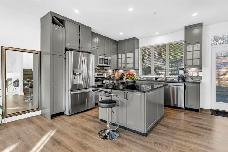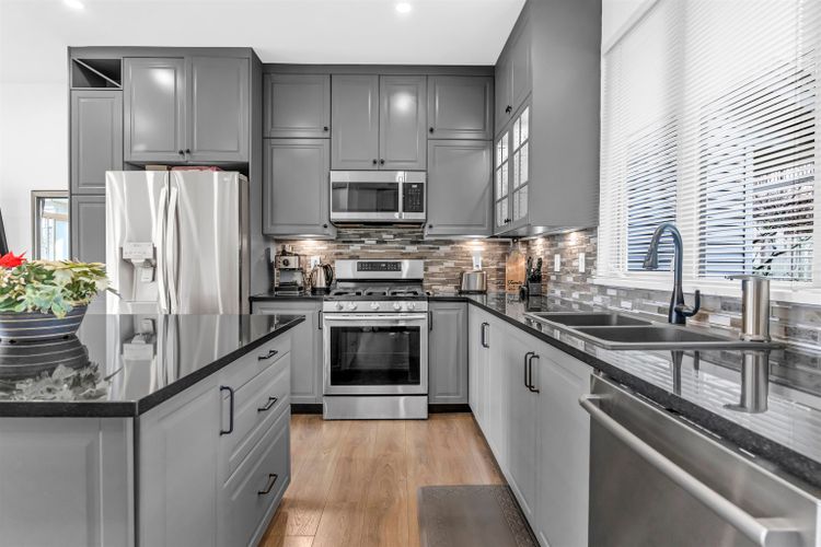 STUNNING, 4 bed 3 bath Sunpointe END UNIT w/ Fabulous 180 DEGREE UNOBSTRUCTED VIEWS! This extremely well maintained, modernly updated townhouse features a spacious Open Concept Living w/ 9' ceilings, Gas Fireplace, Deck, New Floors, New Paint & Lighting. Chef's Kitchen includes HighEnd S/S appliances, Gas Stove, Pantry & Large Island w/ Quartz Counter Tops, all connected to a Private Patio. Upper level includes 3 well-Sized bedrooms w/ Walk-In Closet, a spa like en-suite & Stunning Balcony View in the master. Lower level includes a flex space for 4th bedroom or Rec Room, a Double Garage, and Storage. HW Tank also recently replaced. Centrally located to Willowbrook Montessori, Daycare, Elementary, Costco, Save-On. Don't miss it. OH Saturday 14 12-2PM and Sunday 15 12-2PM