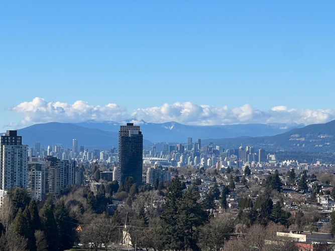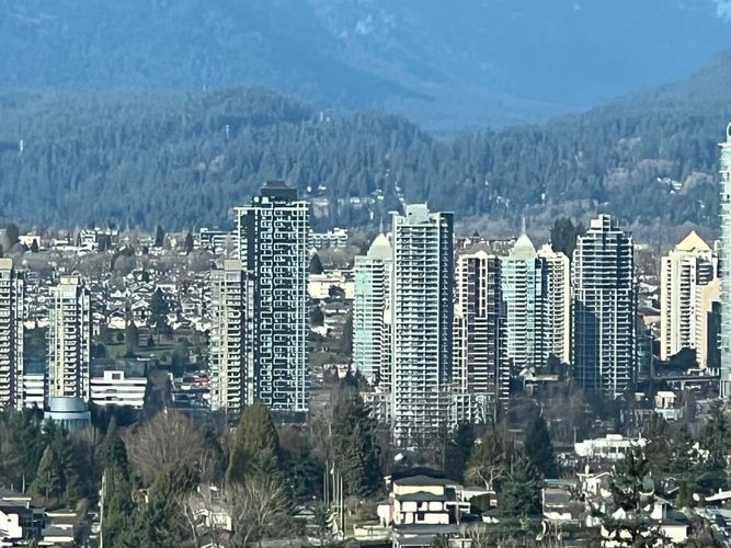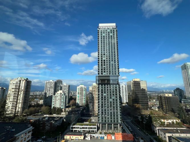 Welcome to Nuvo by Anthem. Brand New 886 sq. ft. 2 bedrms & 2 baths NW corner unit. Trendy flr-ceiling 2 tone kitchen cabinet w Bosch appliances. Open on dining & living area. No pillars within unit. Spacious master ensuite, side-by-side laundry & heat pump for hot & cold air. View of Downtown, Brentwood, Lougheed Mall & Central Park field all within this unit. R. size EV charger ready stall next to locker. Amenities: Bike repair & share, parcel room, lounge & kitchen, dining & meeting rooms, pet washing station, game, fitness, sauna & co-working rooms, children play, BBQ, fire-pitch & seating areas. Skytrain, Central Park, Library, Crystal & Metrotown Malls ALL within 2-10 mins walk!! Calm & convenient location. Perfect for Retirement or young family. Open Sat & Sun (14 & 15) 2 - 4 pm