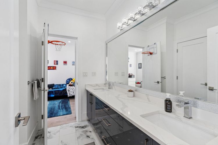Pristine 8 bedroom, 7 bathroom home in Willoughby Heights. Main floor features a great room, den, spice kitchen, dining room, 1 large bedroom with ensuite and a powder room. 4 bedrooms (2 primary bedrooms) and 3 bathrooms upstairs. In the basement, Media room with custom movie theatre cabinets and lighting, a 2 bedroom LEGAL SUITE in the basement along with a 1 bedroom suite. Experience year round comfort and enjoyment with a CUSTOM DREAM Outdoor Kitchen with: DEKKO 48" fire pit, Napoleon Pro 500 Gas Grill and 10" Drop In Burner, Beverage Centre, Built In Storage, and Granite counter tops. FULLY CUSTOMIZED Garage Living Signature cabinets and storage racks. Camera and alarm system, built in vacuum. Over $150k in Upgrades. 2-5-10 warranty in place.