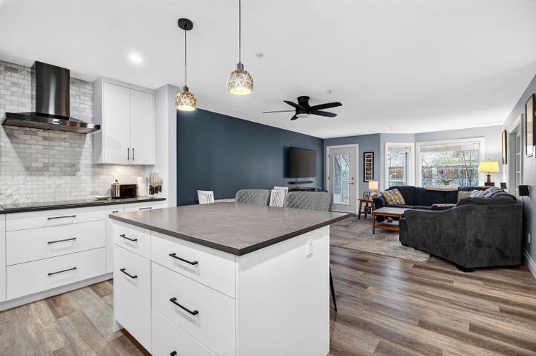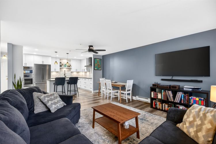 Extensively updated with a fully rebuilt kitchen featuring wall oven, speed oven/microwave, induction cooktop & stone sink. Open layout with seamless kitchen to living room flow and no dividing wall. Fully rebuilt spa-inspired ensuite with double walk-in shower, enormous 80 gallon 2 person tub & double vanity. Upgrades include smart thermostats, new switches (smart in main areas), fresh paint & new flooring through most of the home. Flooring for the second bedroom is already purchased & included. Large rooftop patio that is truly one of a kind and perfect for relaxing or entertaining. Well Managed Strata & Building Fully RE-PIPED, Regular Roof Maintenance with expected life of 10+ years & Elevator Upgrades already PAID for!