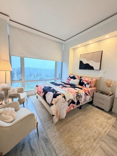 Penthouse with Stunning Views - Welcome to this beautiful southwest-facing 2 bed, 2 full bath penthouse in the heart of Surrey. Enjoy breathtaking, unobstructed views of the mountains and city from your private top-floor retreat. Featuring 10-ft ceilings, large windows, and a rare gas fireplace found in only a few units, this home feels bright, warm, and inviting. No one above you means true peace and privacy. Includes two side-by-side parking stalls and a storage locker. Building amenities include a gym, hot tub, sauna, and more. Steps to Guildford Town Centre, Superstore, theatres, restaurants, parks, sports fields, all levels of school and quick Highway 1 access. Penthouse living at its finest.