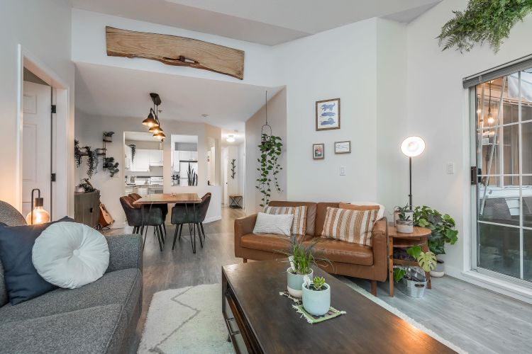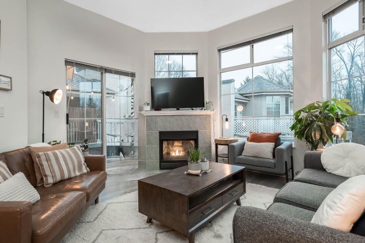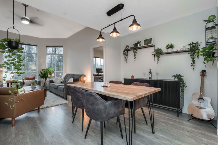 Dream PENTHOUSE —a bright, airy oasis with soaring vaulted ceilings and gorgeous garden views! Imagine mornings sipping coffee bathed in sunlight and evenings entertaining friends in your open-concept living space, complete with sparkling white granite counters and stylish new lighting & updated bathrooms and fresh Paint throughout!. Each bedroom is perfectly placed for privacy, making it ideal for roommates or guests. Cozy up by the gas fireplace ( gas is included in your strata) or fire up the grill for a balcony barbecue. There’s plenty of room for game nights, dinner parties, or just relaxing after a stroll along the nearby Traboulay Trail. With transit, parks, and downtown Port Coquitlam at your doorstep,