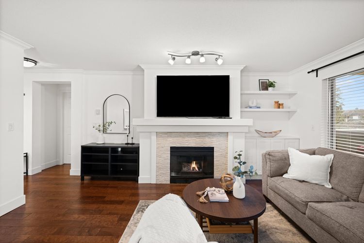 Welcome to Regency Terrace in the heart of Langley City! This bright & spacious 2-bedroom, 2-bathroom home features a functional layout w a cozy gas fireplace, updated flooring, paint, & an open white kitchen. Oversized primary bedroom offers generous closet space & a spacious ensuite, while the second bedroom is thoughtfully located on the opposite side for added privacy. Enjoy a large covered patio with beautiful park views, perfect for relaxing or entertaining. The building offers great amenities including a lounge and fitness room. Includes 1 parking stall, with hot water & gas covered in strata fees. No dog breed restrictions. Located directly across from Linwood Park with a new playground and off-leash dog park— Open House Saturday March 14 2:00 - 4:00pm.