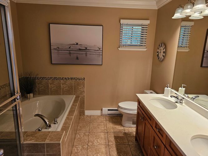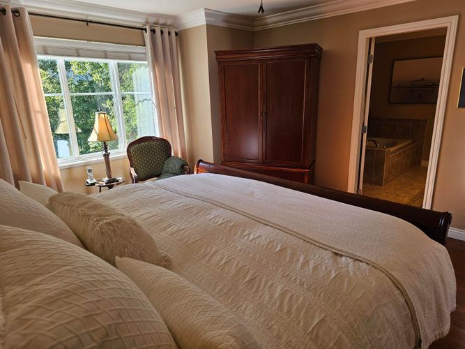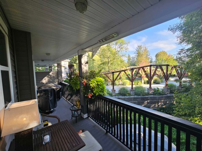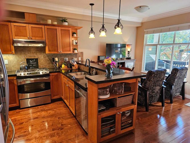 Beautiful end-unit townhome in sought-after Redwood Bridge Estates, perfectly positioned to overlook a serene greenspace alive with birds, squirrels, and natural beauty. This luxurious 3-bed, 3-bath home features soaring ceilings with elegant crown mouldings and a gourmet kitchen that opens to a south-facing deck - ideal for barbecuing and enjoying the peaceful surroundings. The spacious primary suite includes a spa-inspired ensuite with double sinks, a soaker tub, and a separate shower. With three decks—including one with a heater and another with a private fire pit—you’ll have endless options for outdoor relaxation. Even the double garage is heated for comfort. In a prime location close to three golf courses, historic Fort Langley, and the scenic riverside trails of Derby Reach.