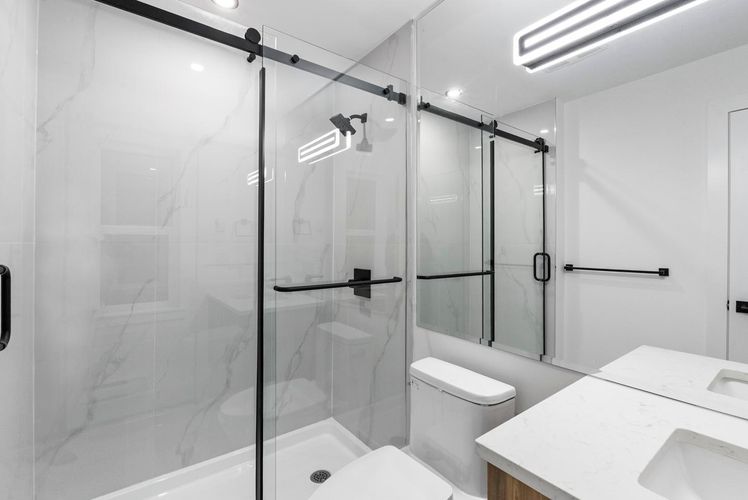 Brand-new, ultra-modern 3-bedroom + Den, 2.5-bath townhome backing onto a protected lush greenbelt. The bright, airy main level features 9' ceilings, Fisher & Paykel appliances, motorized blinds, and a kitchen made for cooking enthusiasts with a gas cooktop, quartz countertops, and ample storage in custom cabinetry. The Park Landmark features a playground surrounded by nature and private amenity building perfect for events. This unit features a spacious double garage with rough in EV. Just a short drive to Hyland Elementary and Sullivan Heights Secondary, and minutes to Newton Town Centre, shops, parks, transit, and major amenities. Open house on Apr 10,11, 12 from 12-4pm