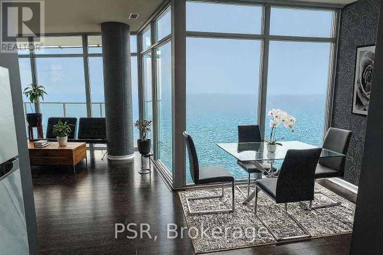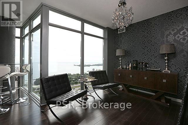 Modern Elegance Meets Lakefront Living at NXT II- Introducing Suite 2104- a rarely offered2+1 bedroom, 2-bathroom corner residence boasting nearly 1,100 sqft of refined, contemporary living framed by sweeping, unobstructed views of Lake Ontario and the Toronto skyline. From the moment you enter, you're greeted by floor-to-ceiling glass, rich hardwood floors, and a bright open-concept layout that effortlessly blends luxury with comfort. The designer kitchen features sleek cabinetry, stone counters, stainless steel appliances, and an airy flow perfect for entertaining. The expansive living and dining areas spill out onto a wraparound balcony, your private front-row seat to Toronto's waterfront, sunrise views, and the twinkling skyline by night. The primary suite offers a modern ensuite bath, and calming lake vistas. The second bedroom is complemented by a custom Murphy bed for flexible use, and the spacious den makes an ideal home office, reading lounge, or creative studio with the same beautiful lake views throughout. NXT II residents enjoy access to resort-inspired amenities: A state-of-the-art fitness centre; Indoor/outdoor swimming pools; Tennis court; Theatre room & upscale party lounge; 24-hour concierge; a Day Care Centre; Guest suites + ample visitor parking. Set just steps from High Park, the lakefront, and the Humber River trails, this location is a dream for anyone who loves nature- while still being minutes from downtown via the Queensway, Gardiner, or the 501 streetcar. Perfect for executives, downsizers, or anyone seeking lifestyle, luxury, and convenience in one of the West End's most prestigious condo communities. Available furnished. A truly breathtaking suite- inside and out. (id:26452)