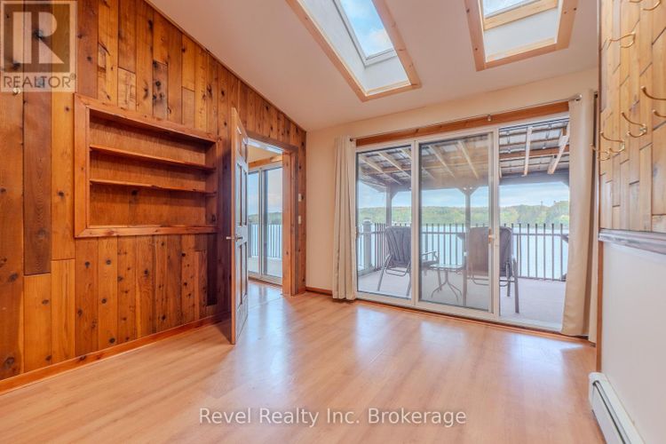 Welcome to 280 Sunnyside Drive, a stunning lakeside retreat nestled on the shores of beautiful Lake Nosbonsing in Bonfield. This exceptional 6 Bed & 5 Bath property ( with the option of 3 separate living spaces/kitchens) offers the perfect blend of year-round comfort and seasonal charm, featuring a spacious walk-out bungalow and a beautifully finished, winterized one-bedroom guest cottage. Designed to embrace natural light, the main home showcases Viceroy-style windows, vaulted ceilings, warm wood accents, and a cozy wood-burning stove. The open-concept living and dining area flows seamlessly onto a covered upper deck with a screened-in section ideal for enjoying serene lake views, day or night. Perfect for entertaining, the kitchen offers ample space to host gatherings, while the main floor includes 3 bedrooms and 3 bathrooms. The primary suite features a walk-in closet and four-piece ensuite. The second bedroom enjoys its own private three-piece bath, while the third offers a private balcony. A stylish two-piece main bath includes the laundry area for added convenience. The finished walk-out basement provides flexible living with a rec room, kitchenette, two bedrooms, and a 4 piece bath perfect for guests, extended family, or potential in-law suite. Step outside and enjoy two docks, a sandy beach, a fire pit, and expansive waterfront ideal for year-round recreation from summer swims to cross-country skiing. The attached, winterized guest cottage adds even more value, offering a charming one-bedroom layout with a clawfoot tub, beautiful wood finishes, plenty of natural light, and a private screened-in porch. Additional features include a detached double garage, in-floor oil hot water heating. Shore allowance is owned. Move in and experience the very best of lakefront living every season of the year. (id:26452)