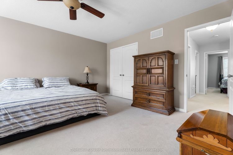 A wonderful opportunity for young families, downsizers, or even those looking to get into the market - this 1300+ square foot (plus finished basement) townhome is part of a well managed, quiet complex in Guelph's sought after south end. Owner occupied, clean and nicely maintained over the years with a new roof in 2025, this spacious 3 bedroom home features an open-concept main floor living area, brightly lit by the westerly-exposed rear window and sliding door. There is a cozy yard, which is open to the playground amenity of the complex, a lovely feature for young families with little ones, or grandparents who frequently host their grandkids! Have peace of mind as you watch your kids play within eyesight of the your home, while the path behind also helps create a buffer space between other units in the complex. Upstairs are three spacious bedrooms, with a large primary bedroom with two closets, and a large 4pc ensuite bath with tiled shower and soaker tub. There is also a main 4pc bath. The basement is finished and has been freshly painted in neutral decor, with a rec room, office nook, storage/utility room, laundry closet (with stackable machines and laundry sink), and more storage. Rough-in for another bath as well, and rental on-demand water heater just installed November 2025. Parking for TWO cars with the attached garage and driveway, and this complex also offers plenty of visitor spaces that are steps from this home. Unit 71 at 1035 Victoria Road S. is situated within a very family-friendly complex, with a bus stop only steps out the front door, near the University of Guelph, the trails at the Arboretum, great schools (including the future secondary school), Victoria Park East Golf Club, shopping, and easy access to the 401. (id:26452)